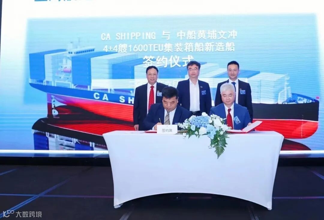 6月28日,中国船舶集团旗下中船黄埔文冲船舶有限公司与CA SHIPPING签署了4+4艘1600TEU集装箱船建造合同。
