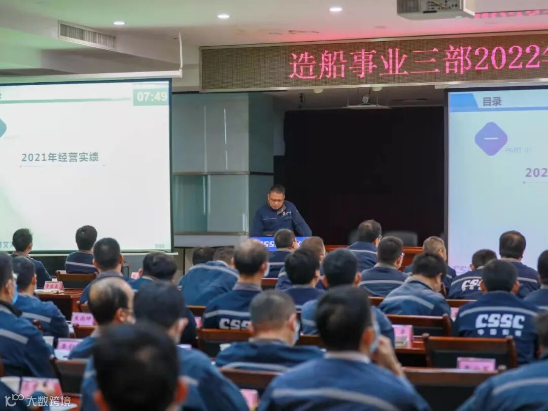 会上,陈标烘总经理助理对三部2021年全年工作进行了分析总结,部署了2022年的重点工作,为三部2022年全年工作的开展指明了方向。三部各分管领导和11个二级部门分别就各自分管领域或部门对2021年工作进行了总结,查找工作中存在的问题,对2022年的工作进行了策划。徐青总经理助理就如何完成全年生产任务及推进事业部融合作了动员讲话。李东总工程师对造船事业三部2022年相关工作作出重要指示。