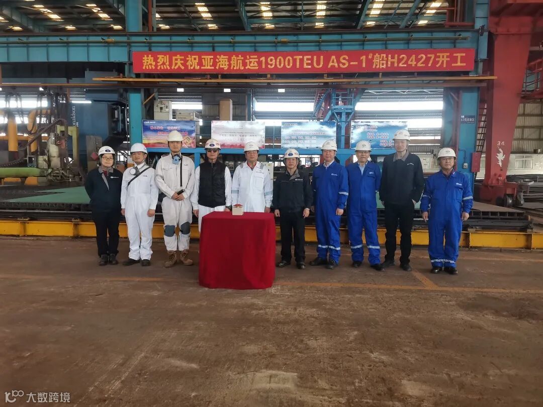 11月24日,中船黄埔文冲公司为亚海航运建造的1900TEU集装箱船(H2427)在文冲厂区船体车间正式点火开工。船东代表、船级社代表及船厂代表出席仪式。