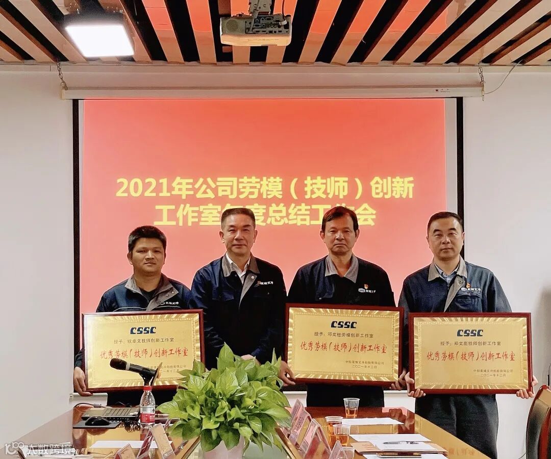 会上,党群工作部回顾总结了公司劳模(技师)创新工作室在2021年度管理运作情况,分析了存在的问题,提出了改进工作的思路。劳模(技师)创新工作室负责人造船事业一部郑文彪、造船事业二部吴玉辉、造船事业三部欧卓文分别作了交流发言,介绍了2021年度工作室的成绩和创新工作亮点。与会人员围绕如何加强劳模(技师)创新工作室的管理运作进行了座谈交流,提出了改进工作的意见和建议。陈飞副书记为获评年度优秀的郑文彪工作室、邓奕柱工作室、欧卓文工作室颁发奖牌。