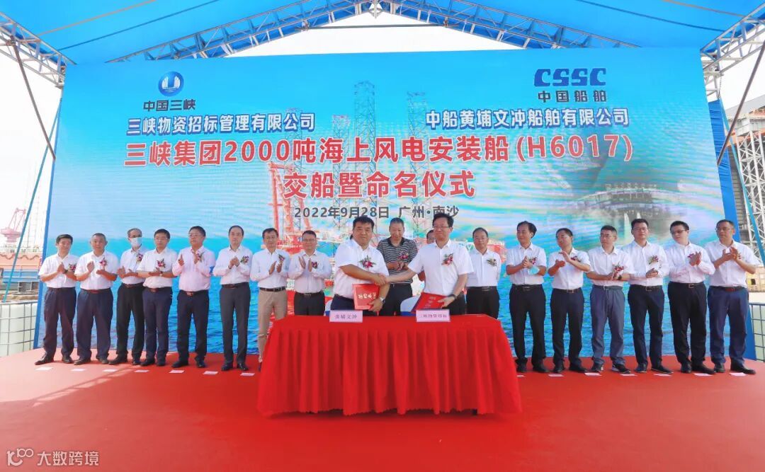 2022年9月28日,中国船舶集团旗下黄埔文冲公司成功交付为三峡集团旗下三峡物资招标公司建造的“白鹤滩”号风电安装平台。