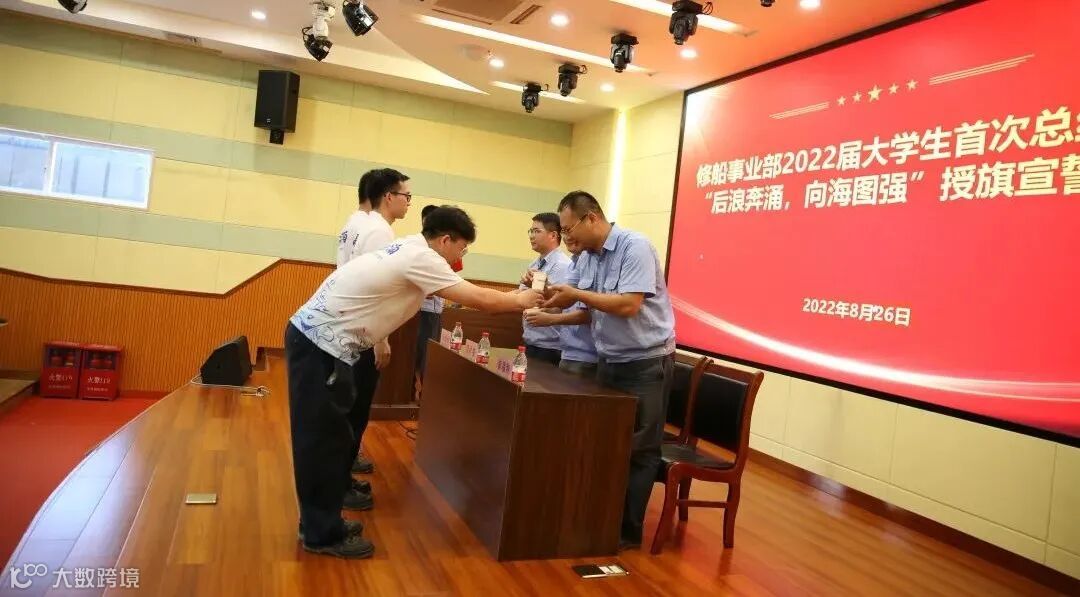 为进一步加强2022届大学生的职业归属感和责任感,推动修船事业部大学生员工队伍的专业化、职业化建设,提高其凝聚力、向心力和战斗力,近日,修船事业部组织召开2022届大学生首次总结会暨“后浪奔涌,向海图强”授旗宣誓活动。