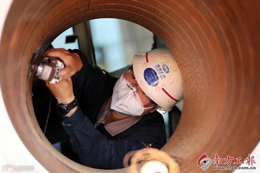 “为了得到准确尺寸,我们很多活都要钻进洞里去测量,”许立干说,“船舶钳工就是要学会在螺蛳壳里做道场!因为很多装配精度需要控制在毫米以内,才能确保船舶动力系统有效运行。”