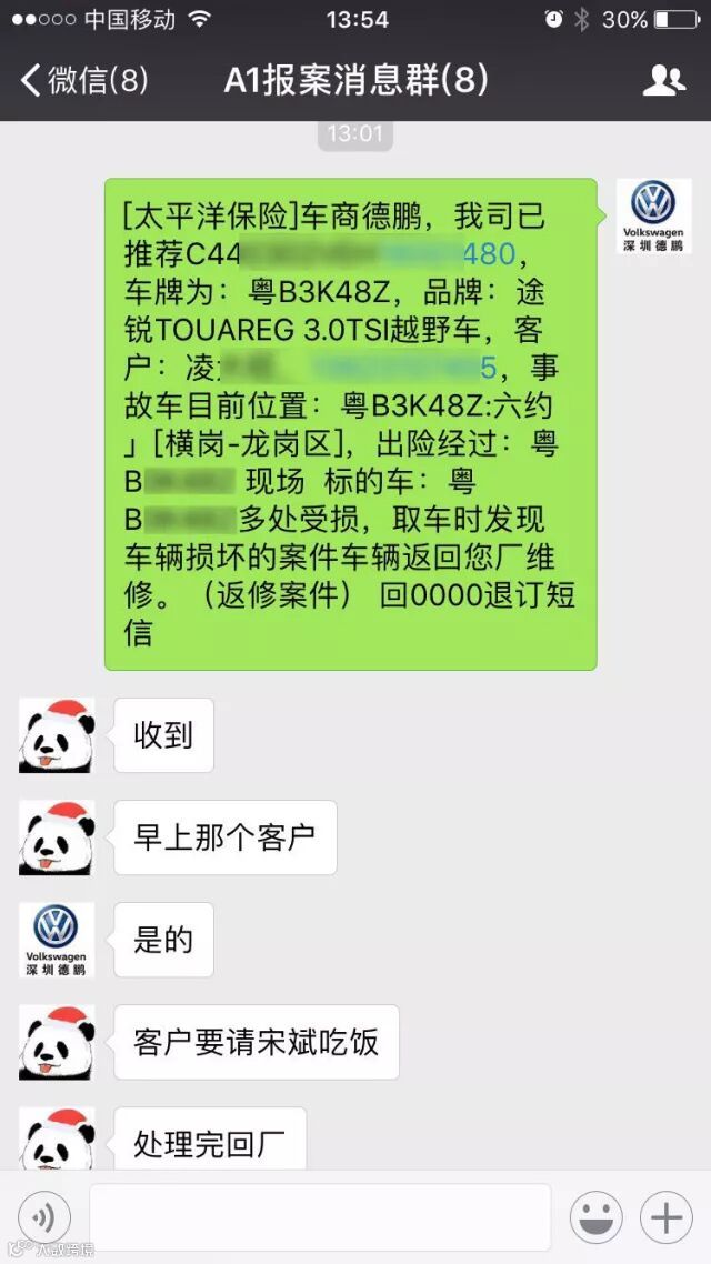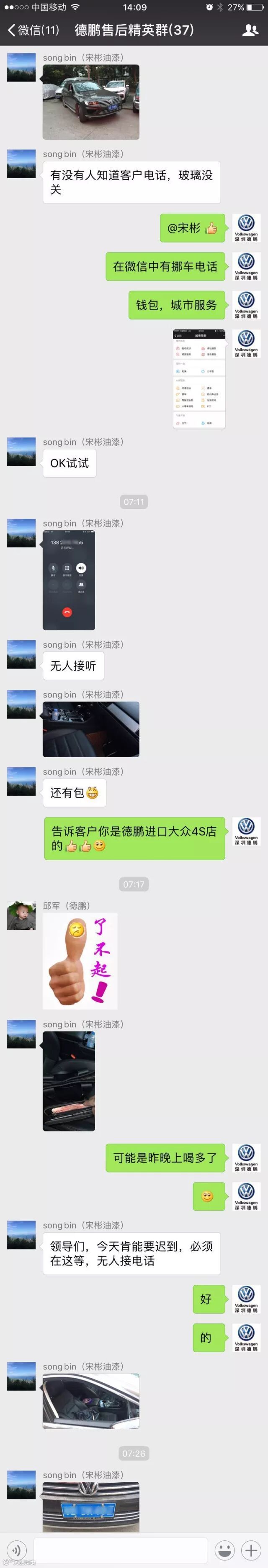 宋彬通过车牌框的深圳德鹏进口大众定制框认出是自己公司的客户,第一时间通过公司找到车主电话,车主可能手机静音没法联系上。
