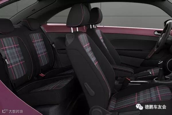 作为一款高配限量版车型,大众#Pinkbeetle采用欧版高尔夫GTI同款格纹衬垫,并将颜色调整为更讨女生喜欢的粉色。集成大众MIB II娱乐系统的6.3寸液晶屏、卫星广播、倒车影像、一键启动、前排电加热座椅等均成为标配。