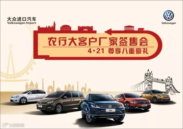 大众进口汽车2018年初与中国农业银行达成合作协议,于4月11日(上周三)正式签署了“2018年度农行大客户优惠购车补贴协议”承诺函,并于本周六在深圳进行首届“农行大客户厂家签售会”活动;