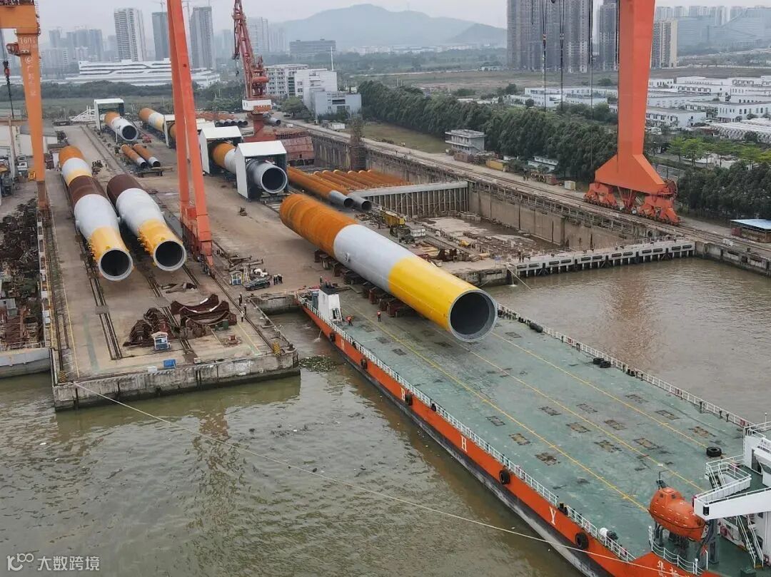 3月31日,由中国船舶黄埔文冲旗下广州文船重工有限公司建造的中广核汕尾甲子一项目78#单桩在中山基地顺利装船,整装待发。78#单桩长100.9米、直径8.3米、重量达到1558.6吨,是文船重工公司2022年制造交付的首根单桩,吹响了2022年风电产品交付冲锋的号角。