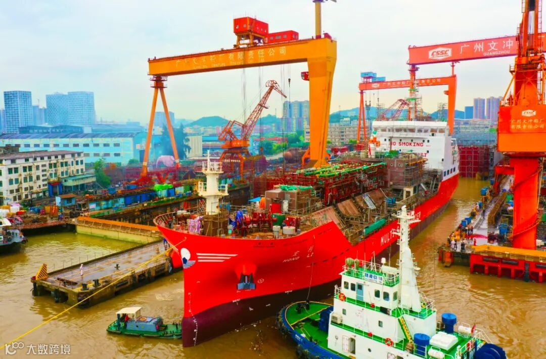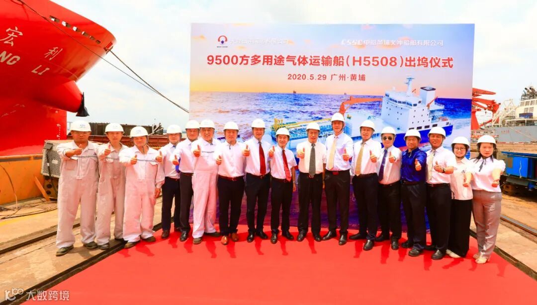 ▲ 中国船舶黄埔文冲9500方多用途气体运输船首制船出坞