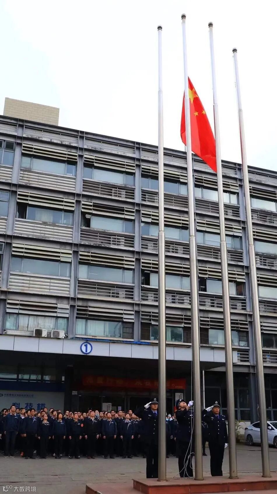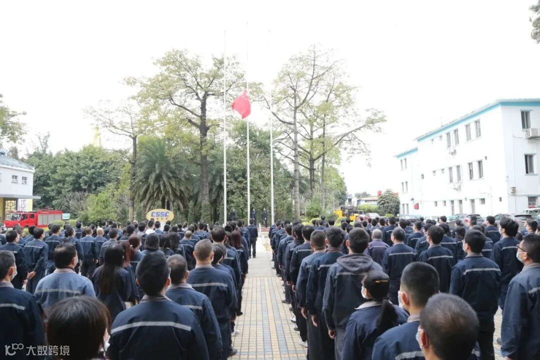 1月4日上午,中国船舶集团旗下黄埔文冲公司四厂区同步开展升旗仪式,各单位、部门代表参加仪式,听着庄严的国歌,注视国旗缓缓升起。