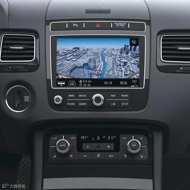 车内中控部分,途锐拓界版配备采用8英寸彩色触摸屏幕的RNS 850车载导航系统,内置的60G硬盘。同时这套系统还支持与iPhone手机进行互联,并支持DVD播放、语音控制、蓝牙连接等实用功能;