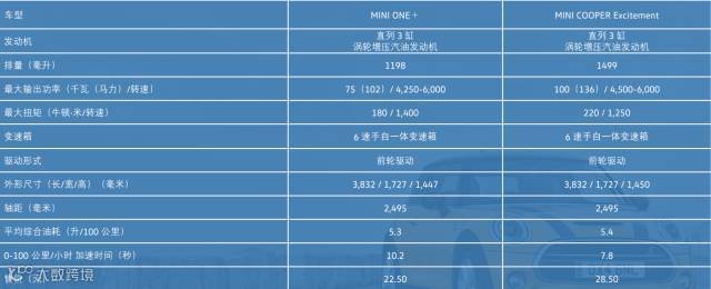 下图是MINI的参数表