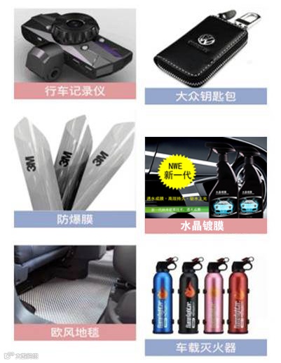 (专用行车记录仪、专用地毯、防爆膜、钥匙包、头抱枕套装、随车灭火器)