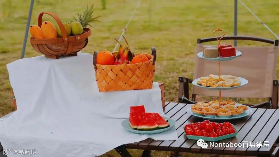 打卡区:野餐风格、户外聚会风格、豪华露营风格随意摆拍