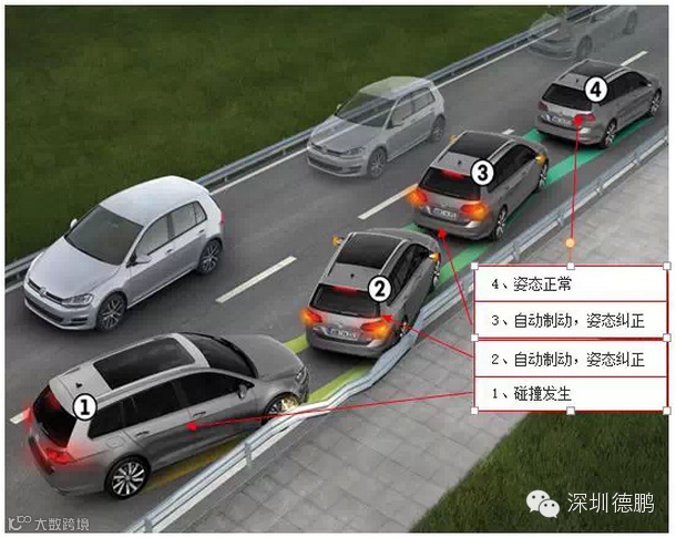 重点来了:多次碰撞预防系统是首次在这个级别上应用,小编还是上图解释方便看官理解吧!