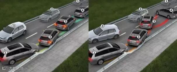 全新Golf旅行轿车是同级车中首个搭载多次碰撞预防系统的旅行车车型。一旦碰撞发生后,多次碰撞预防系统在系统极限范围内自动对车辆进行制动,以避免或减弱后续碰撞发生的风险。图示为配备(左)和未配备(右)多次碰撞预防系统的车辆的碰撞过程。