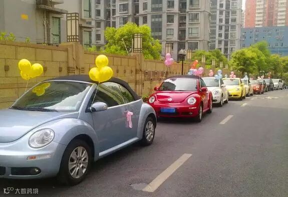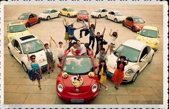 婚车车队见过不少,这么可爱的车队还是头一回见!在繁华的大街上看到一列全部由甲壳虫组成的婚车队,多辆颜色各异、造型可爱的甲壳虫组成的特殊方阵是不是格外醒目!