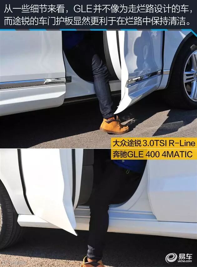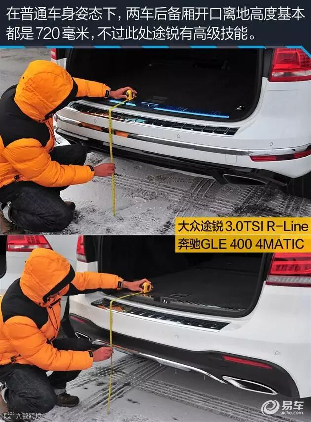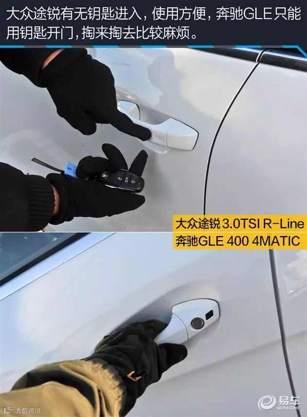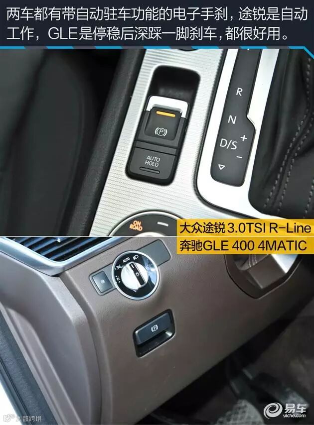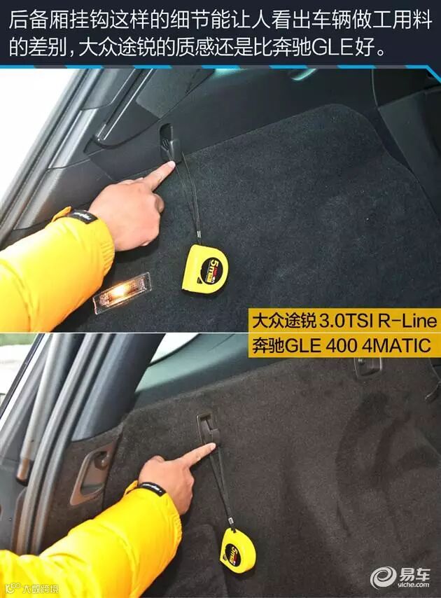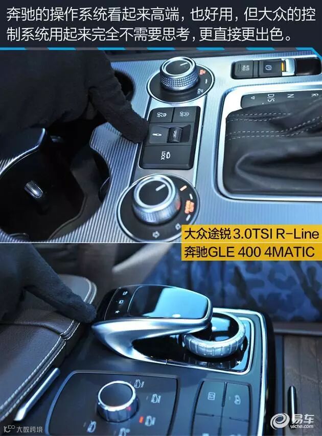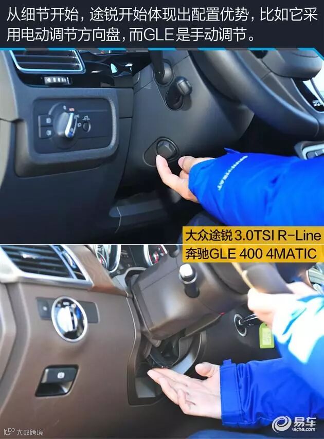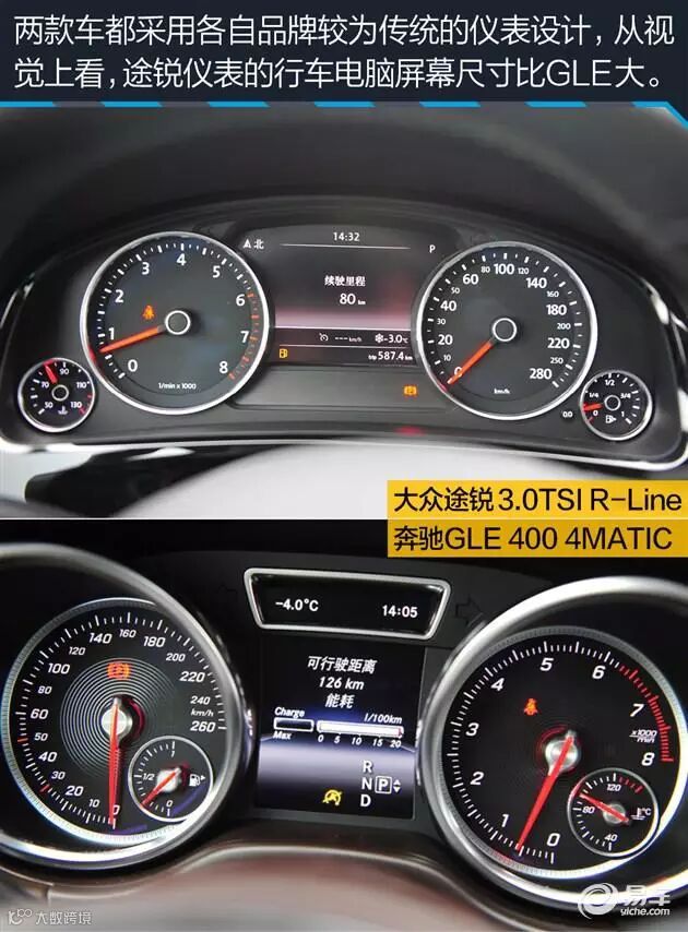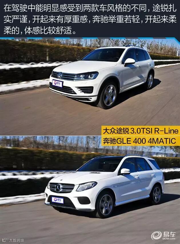还有很重要的一点,在配置上,途锐基本每一项都比GLE好一些,比如GLE是手动调节方向盘,途锐是电动调节;GLE是普通倒车影像,途锐是全景倒车影像;GLE是普通音响,途锐是丹拿音响;GLE是前排座椅加热,途锐是后排座椅也有加热。作为豪华SUV,途锐的配置让人感觉更享受一些。