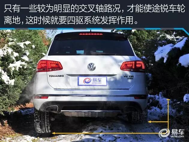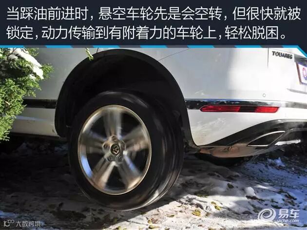 我们也找到了一块场地体验了途锐的越野性能,一般的坡度和炮弹坑完全没有难度。有几个落差明显的交叉轴才会是途锐单轮离地。这时候踩下油门,你可以感受到车辆明显在对打滑的车轮进行制动,而把动力传递到有附着力的车轮上,车辆可以特别轻松的向前行驶。