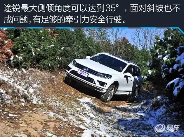 说到越野,途锐的越野能力应该在同级别车型中数一数二,起码很多越野数据都是竞争对手不能达到的。比如车辆最大侧倾角度可以达到35°,即便在侧向倾斜的车道上,新途锐也拥有足够的牵引力安全行驶。最大涉水深度580mm,最大接近/离去角30°,无论坡道、堤坝或丘陵,新途锐都可轻松驶过,最大爬坡能力,45°,这越野世界这就是100%的坡度了。