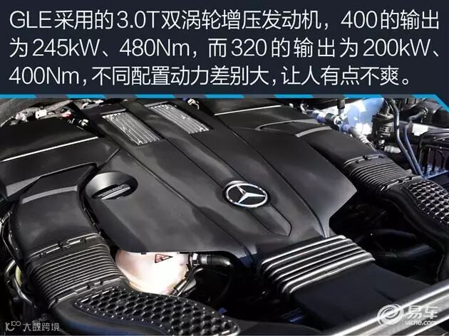 奔驰GLE也采用3.0T发动机,不过各个配置车型动力不一样。GLE320输出低一些,最大功率、扭矩分别为200kW、400Nm。GLE400输出更高,功率、扭矩分别为245kW、480Nm。它们都搭配7挡手自一体变速器。