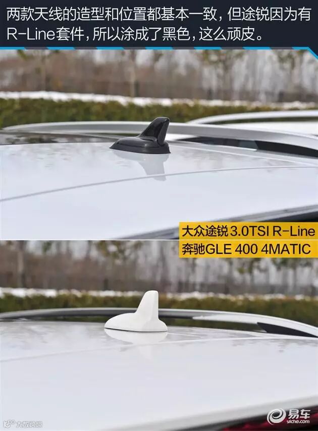 除了各自品牌的设计特点之外,途锐和GLE有很多相似之处,比如同样采用全景天窗,都有双出排气管口,车尾上面的小定风翼都可以减少乱流,提升稳定性、降低噪音。另外像车顶行李架、天线、后雨刷位置、后备厢上防划板等设计都如出一辙。总之在外观造型部分,两款车各有特色,没有最好看只有更喜欢。