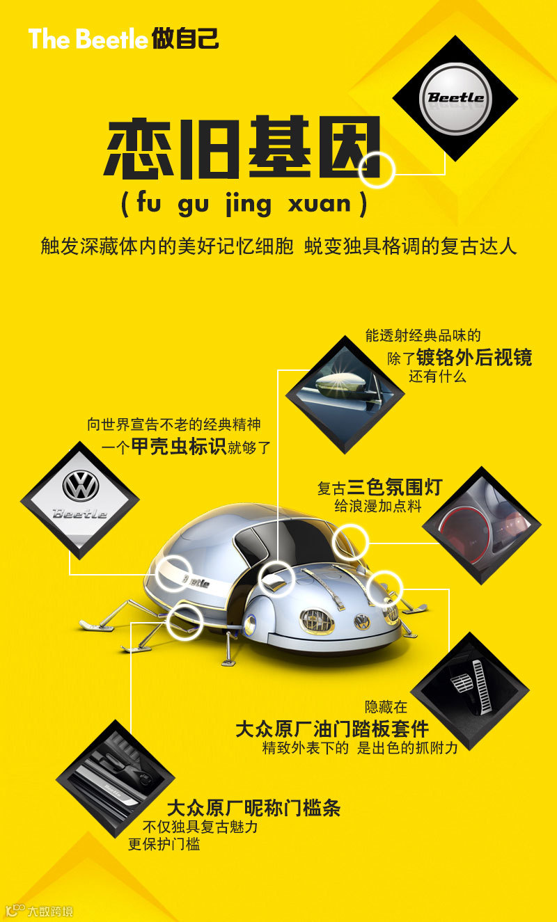 甲壳虫标识:复古味道十足的考究字体车标,时刻向世界宣告经典精神不老。