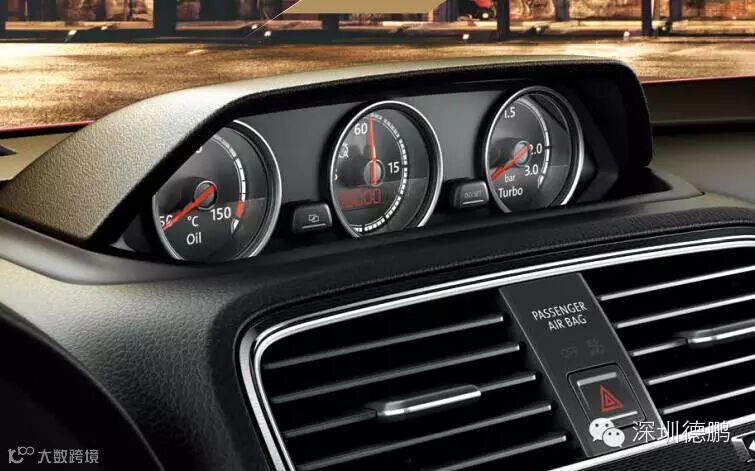 帅气简介的仪表盘让你的心率悸动吧!运动仪表盘让你仿佛置身塞车中2.0TSI涡轮增压汽油直喷发动机,155KW最大输出功率结合280N.m强悍扭矩所带来的彭澎湃动力,让你也体验了一次速度与激情!