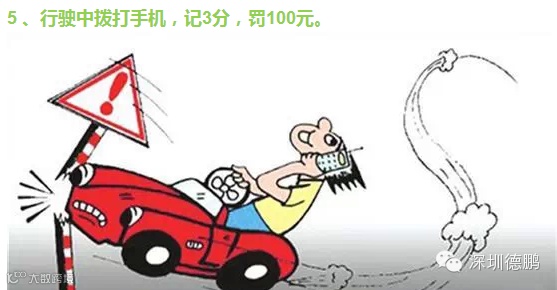 5 、行驶中拨打手机,记3分,罚100元。