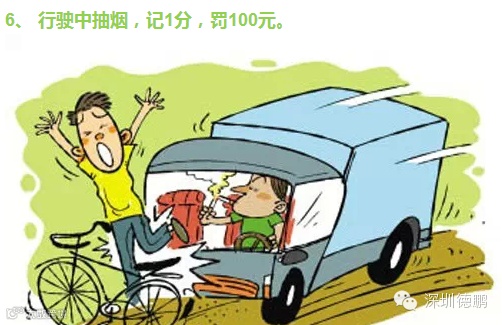 6、 行驶中抽烟,记1分,罚100元。