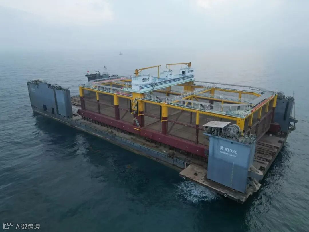 近日,中船黄埔文冲船舶有限公司所属半潜驳“黄船030”团队携手中联海广瀛工程物流有限公司项目团队,先后圆满完成国家电投集团“龙宫号”深海养殖网箱与全球单机容量最大漂浮式风电平台“三峡领航号”基础的滚装下水任务,助力我国海洋装备与工程能力再次实现重大飞跃。