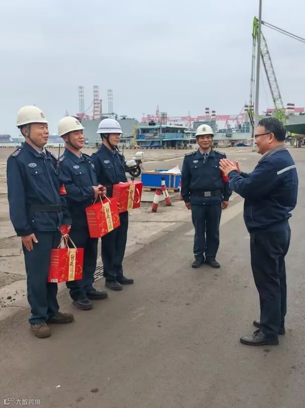 灵蛇辞旧岁,金马迎新春。大年初一,中船黄埔文冲船舶有限公司党委书记、董事长罗兵,总经理助理陈标烘,总经理助理段显龙分赴各厂区一线,亲切慰问坚守岗位的春节值班人员,为大家送上新春的美好祝福和暖心关怀,向节日里坚守岗位的员工致以诚挚的问候。