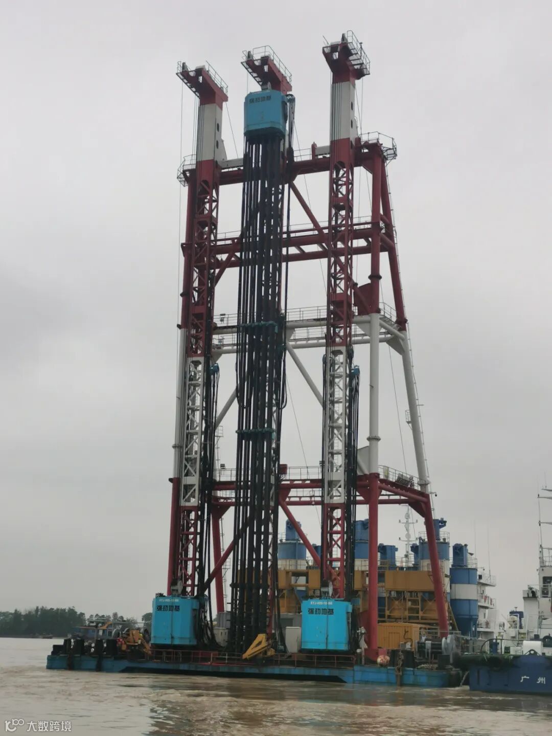 打桩船是一型用于水上打桩作业的船舶,船体为钢箱型结构,在甲板的端部装有打桩架,可前俯后仰以适应施打斜桩的需要,是水上工程领域的利器。