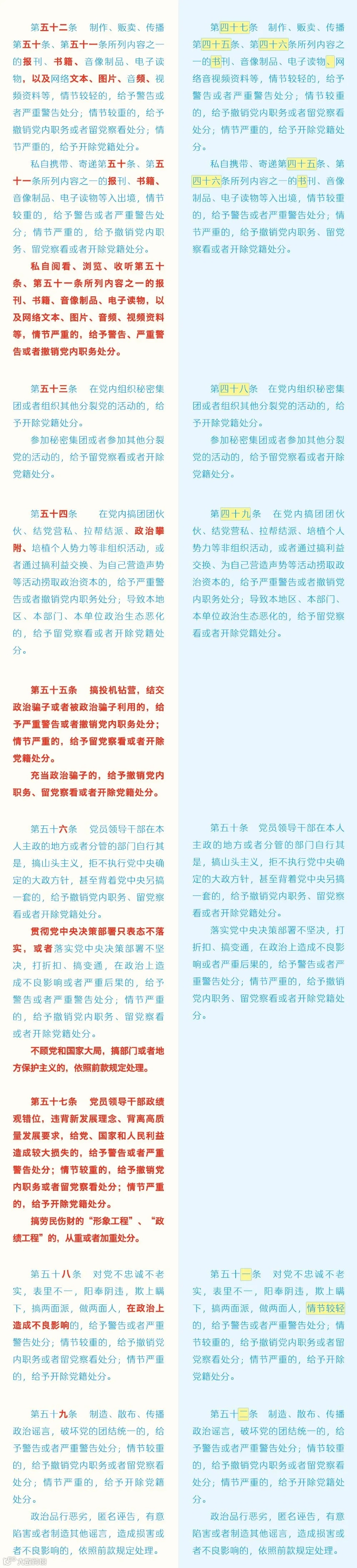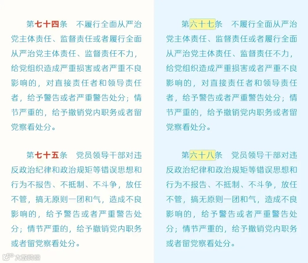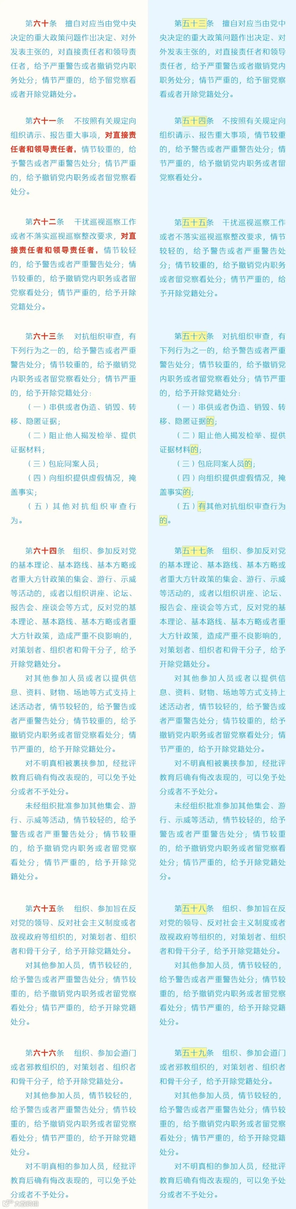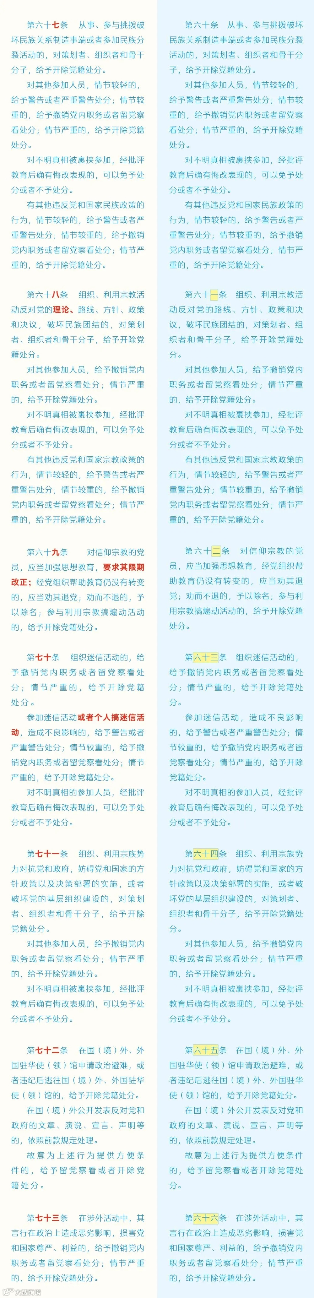 廉洁教育微党课——《中国共产党纪律处分条例》修订条文对照表(6)(来源中央纪委国家监委网站)