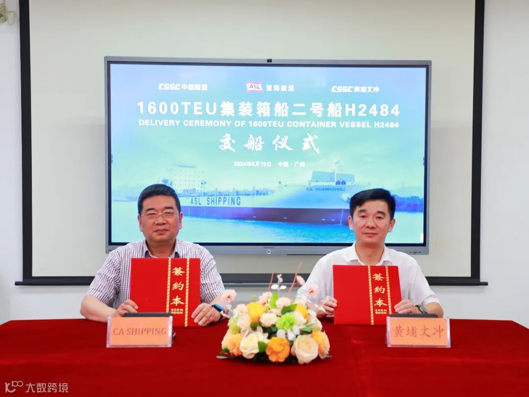 2024年6月19日,中国船舶集团旗下中船黄埔文冲船舶有限公司成功交付2300TEU支线箱船“ITAL WIT”轮(H2448)、1600TEU支线箱船“CA GUANGZHOU”(H2484),两船合计较合同期提前237天交付。