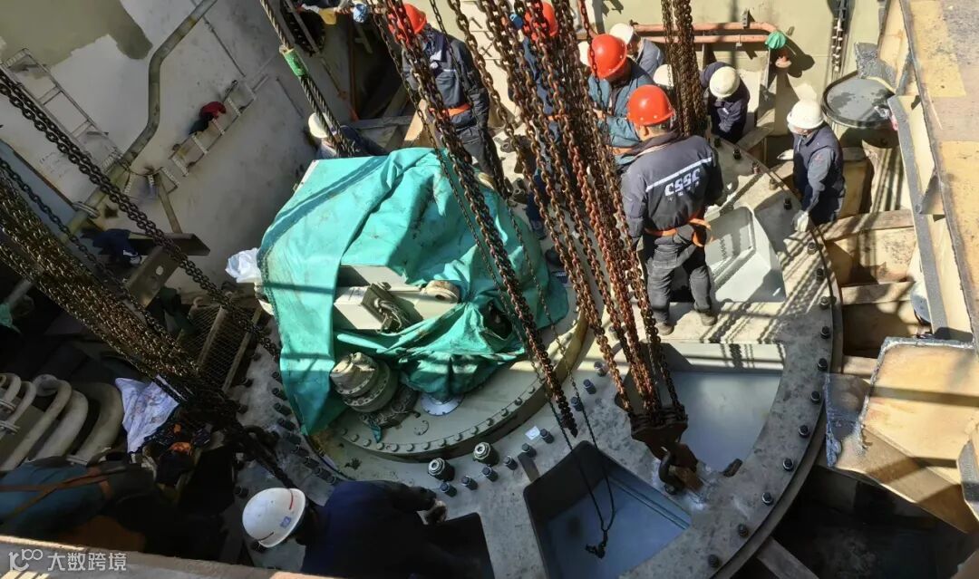 2023年12月23日,项目完成长轴系安装,较同类船型该项工作节省了约20天周期,得到船东、船检好评。随后,项目组又较合同周期提前2天完成了该船31个分段的搭载、长轴系全回转装置安装、以及其它下水必要项目的施工,超预期实现下水节点。