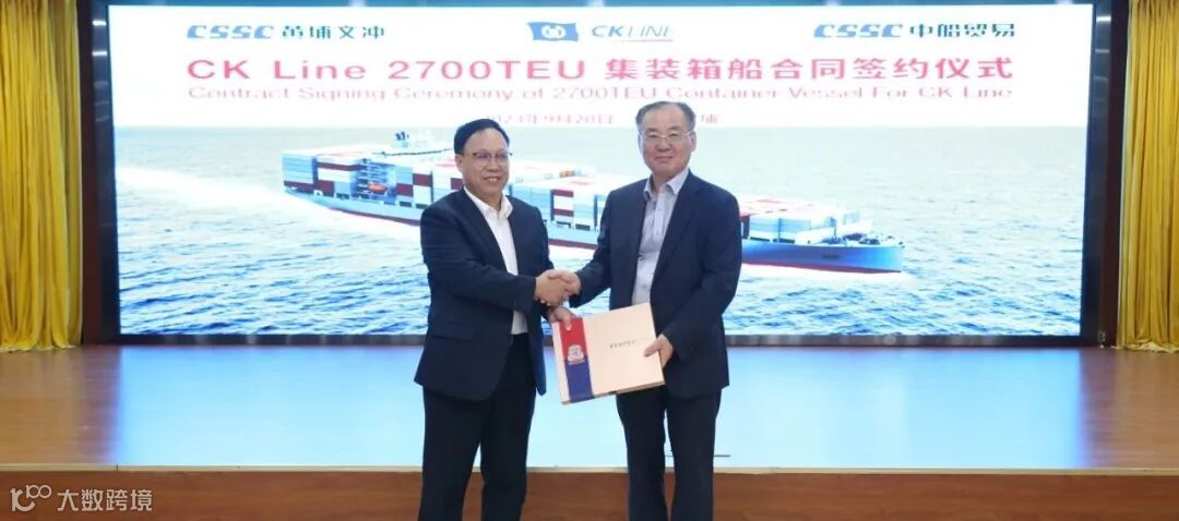 2023年9月20日,中国船舶集团旗下中船黄埔文冲船舶有限公司联合中国船舶工业贸易有限公司,与韩国CK Line公司签订2艘2700TEU集装箱船建造合同。