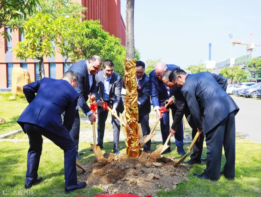 观看舞狮表演后,各方代表来宾一同登上新船参观。下船后,各方代表一同种下友谊之树。