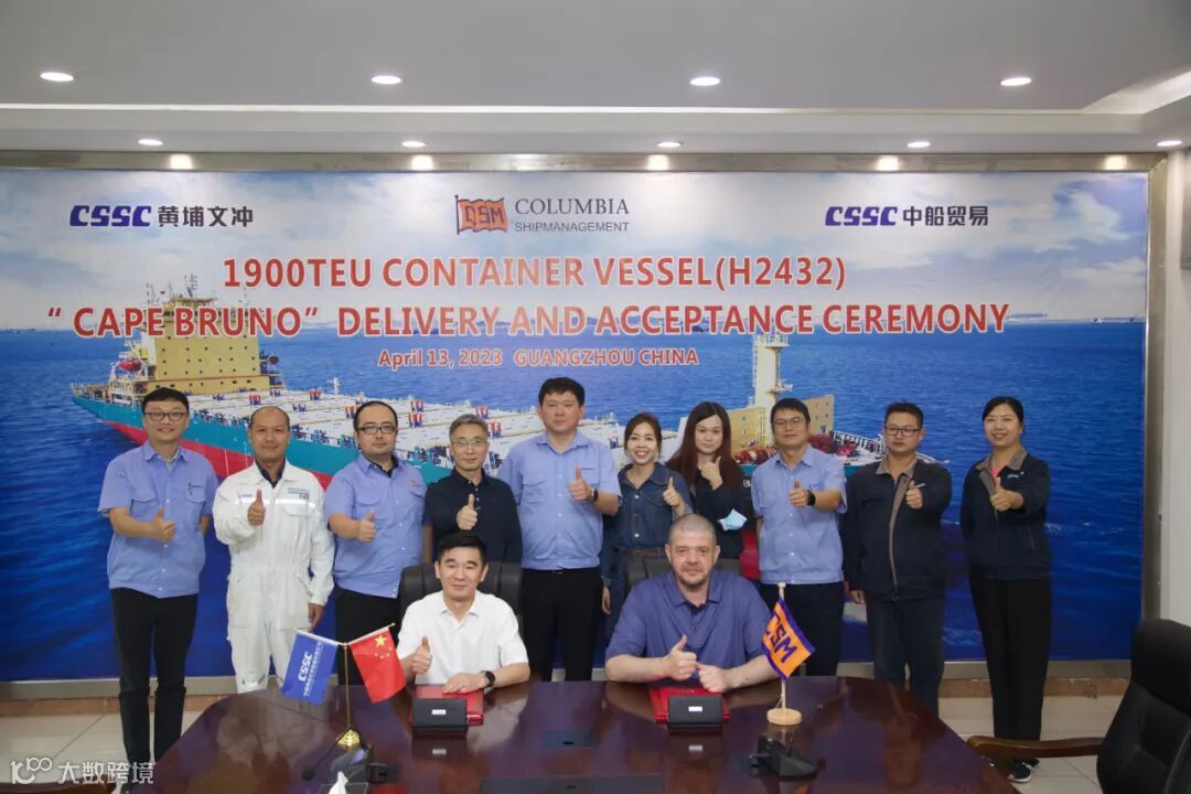 4月13日,中国船舶集团属下中船黄埔文冲船舶有限公司为Schoeller Holdings公司建造的1900箱集装箱船2#船“CAPE BRUNO”轮(H2432)顺利交付。