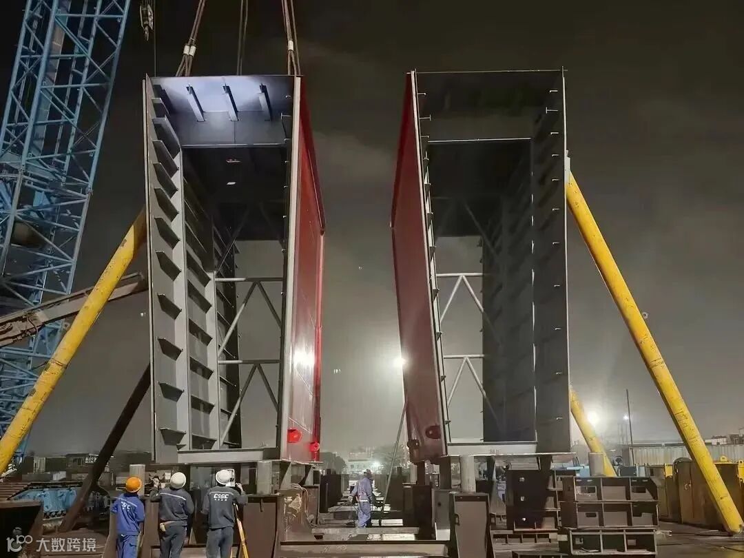 11月8日,重工公司承建的400t*150m门式起重机项目首批四个主梁分段完成装船,发运至广船国际文冲修造进行现场总组。11月11日,400t*150m门式起重机项目在安装现场顺利完成主梁四个分段中组吊装定位。
