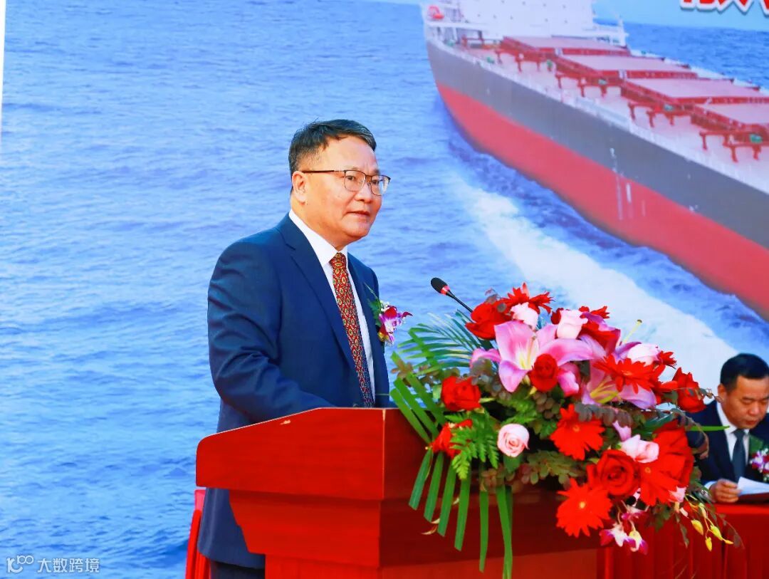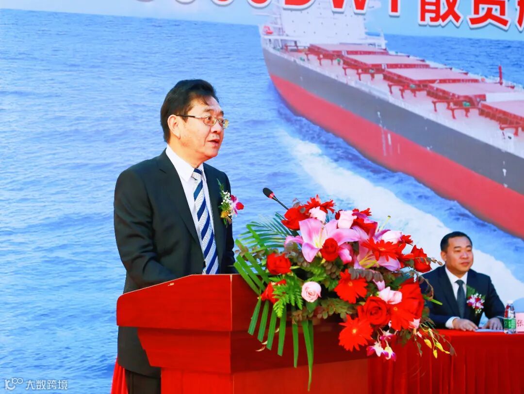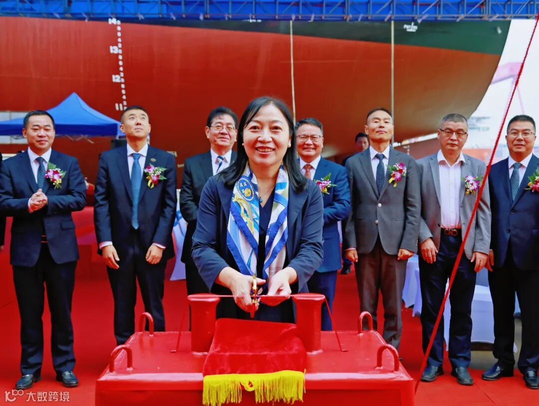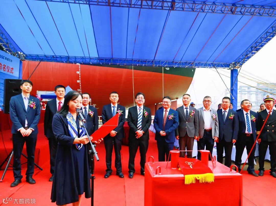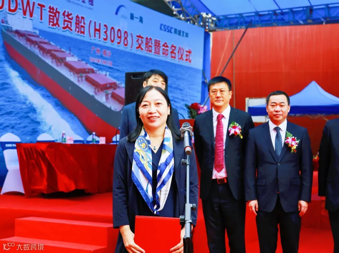 邱健为H3098命名为“EMERALD DAISHAN”轮,并为其剪缆,标志着该船即将开启新的征程。