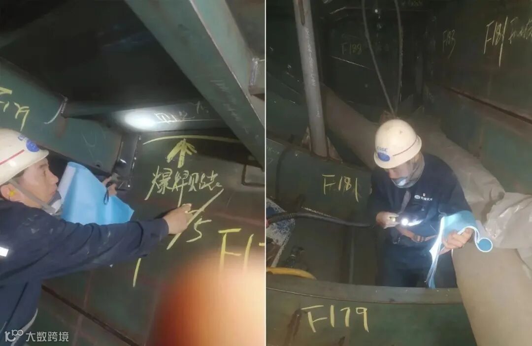 廖志勇负责作业区劳务班组,随着物量增多,他的工作量也是成倍的增加。他根据进度,伴随着大量的焊接和打磨作业,拿着图纸爬完分段的每个角落,边施工边检查。特别是底部分段,狭小闷热的舱室环境,刺耳的噪声,弥漫着的焊烟和灰尘夹杂着汗水,让人难以呼吸,睁不开眼。光是这样的艰难的底部分段,今年他就完成了60多个。