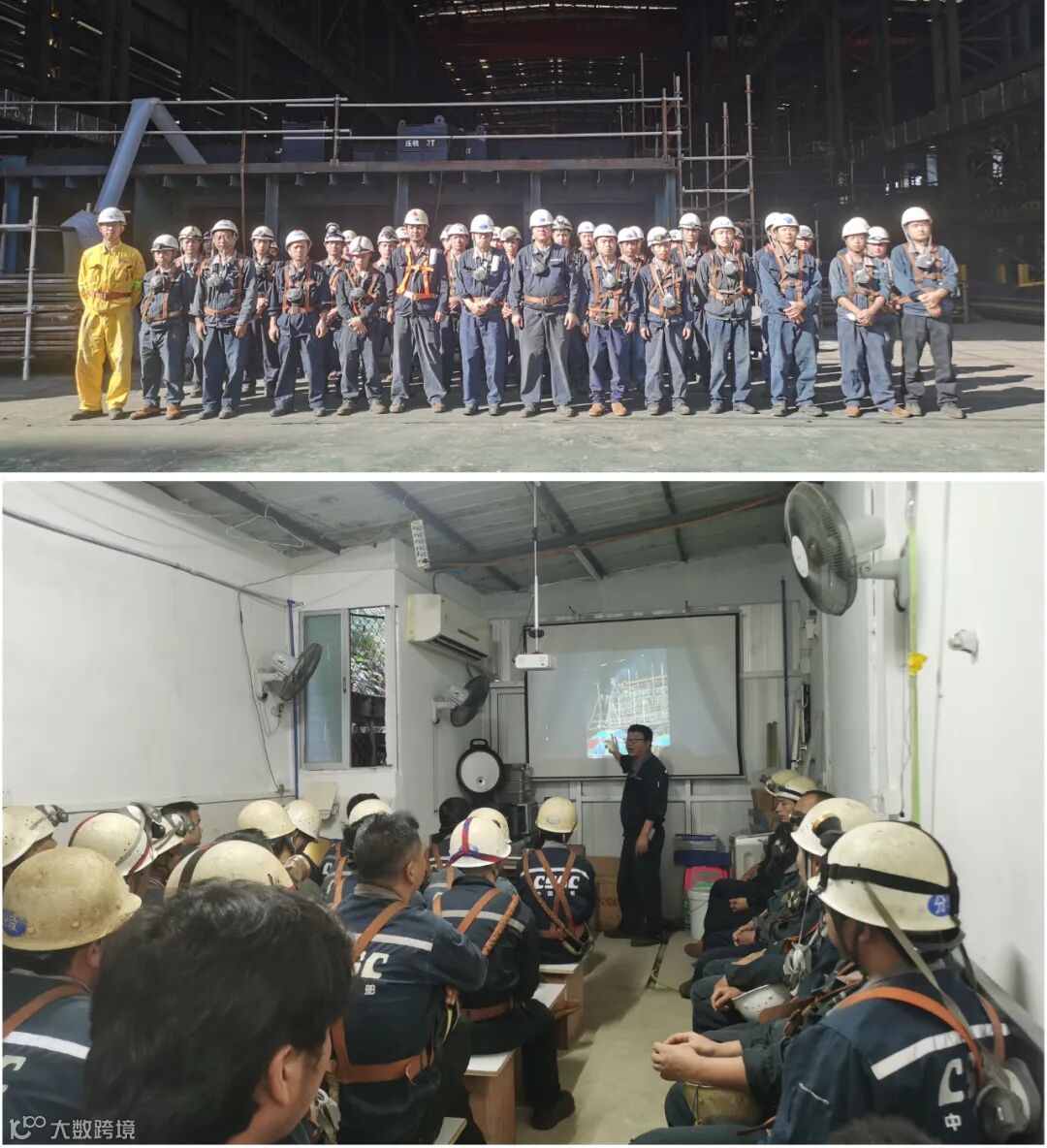 盈海队是分段一区人数最多的劳务队。每天要组织100多人的生产并不容易,队长陈文广每天六点多便来到公司,先是把当天所有生产场地巡查一次,再回到班组准备早会,然后开启一天忙碌的工作。每天班后陈文广都会和分管副作业长谢林、主管杜德昕一起核对计划,及时发现问题并纠偏。同时,他们积极提升自主管理能力,每日制作学习材料,提升班组安全、质量意识。今年,他们要完成分段54个,其中有底部、有上半立体、还有桥楼和上建。部门需要他们做什么,他们就做什么!就是这样一帮坚信“听党指挥、能打胜仗”的可爱、可敬的劳务工兄弟,用勤劳厚重的双手,完成一个又一个节点。