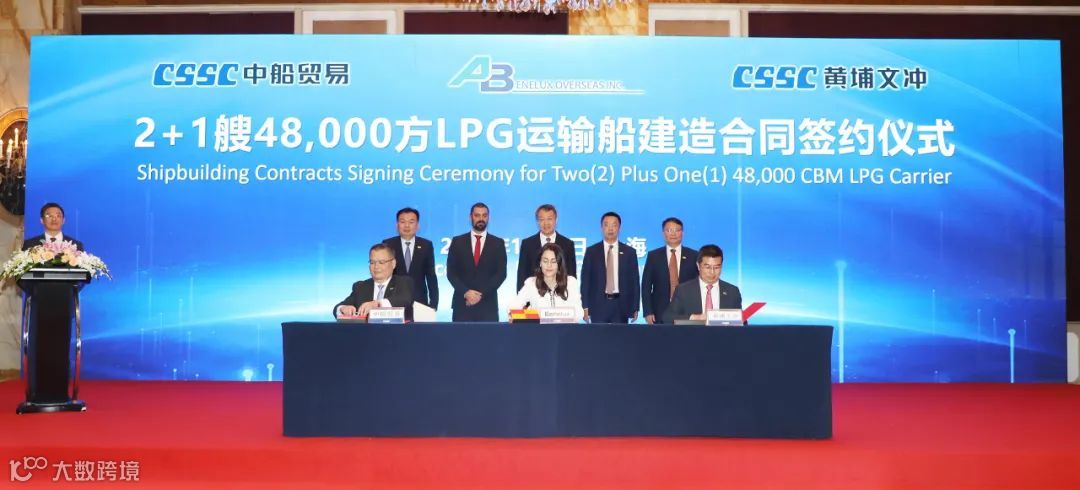 12月5日,在2023年中国国际海事会展首日,中国船舶集团有限公司船海项目签约仪式、招待会在上海举行。签约仪式上,黄埔文冲公司携手中船贸易与Benelux公司签署了2+1艘48000方LPG运输船项目。中国船舶集团董事长温刚、副总经理盛纪纲见证签约。