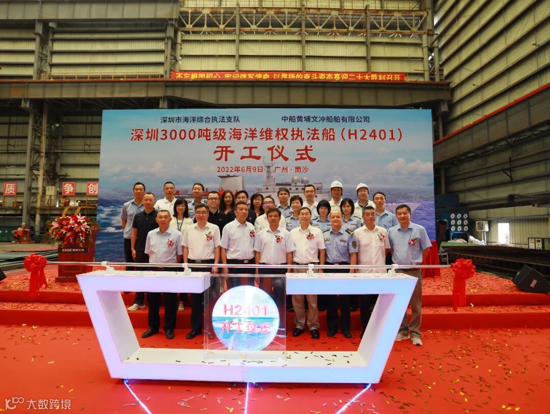 6月9日,深圳首艘3000吨级海洋维权执法船在中国船舶集团旗下黄埔文冲公司船海事业部举行了开工仪式。