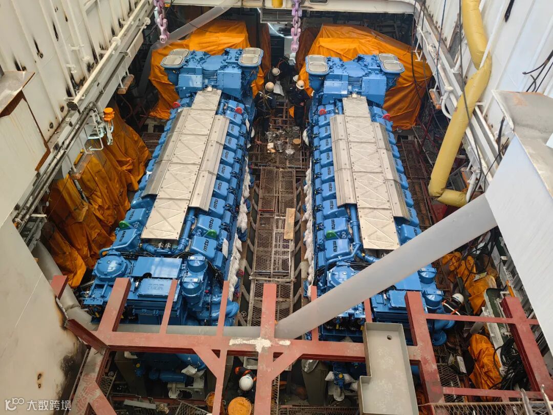 该船主推进系统由5家单位供货,并且需要接入全船智能化的信息集成平台。如何在各主要设备单元间搭建 “神经网络”,让整套系统运转顺畅就成了调试人员必须要啃的“硬骨头”。在调试之初,设备间的通讯接口不匹配,主机遥控和监测找不到正确信号,主机与齿轮箱的通讯接口也相互不匹配。有一段时间,船上的集控室每天都挤满了人,一片愁云惨淡。所有调试人员的额部都皱成川字形,有的每隔几分钟就起身去机舱查看一次仪表的数据,有的不断打电话确认厂家反馈信息……大家一条线路一条线路查找原因,不断的试错、不断的优化,成功实现了全船85个电气系统、机舱内2300个设备接口的通讯、控制。