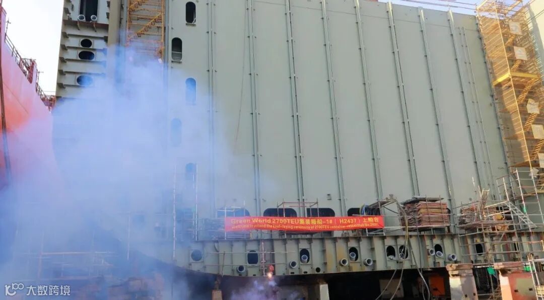 12月28日,公司为Schoeller Holdings公司建造的GW2700TEU系列集装箱船首制船(H2437)在龙穴厂区举行了上船台仪式,船东监造组、船级社及船厂相关代表共同见证了总段上船台搭载建造。