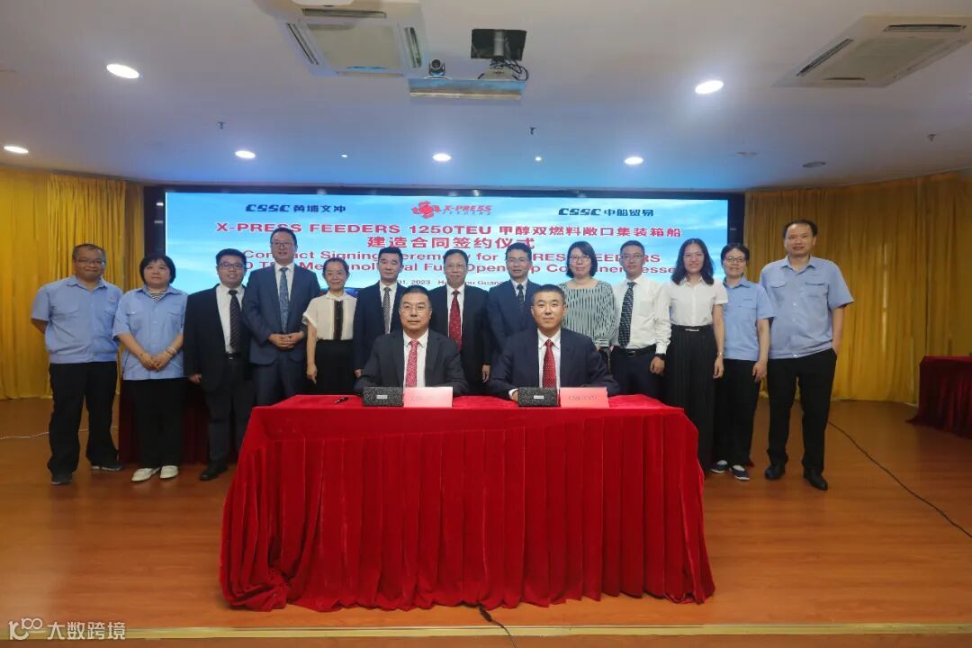 近日,中国船舶集团属下中船黄埔文冲船舶有限公司联合中国船舶工业贸易公司与新加坡船东X-Press Feeder集团签署6+2艘1250TEU甲醇双燃料敞口集装箱船建造合同,船东公司、中船贸易公司、黄埔文冲公司等单位共同出席了云签约仪式。