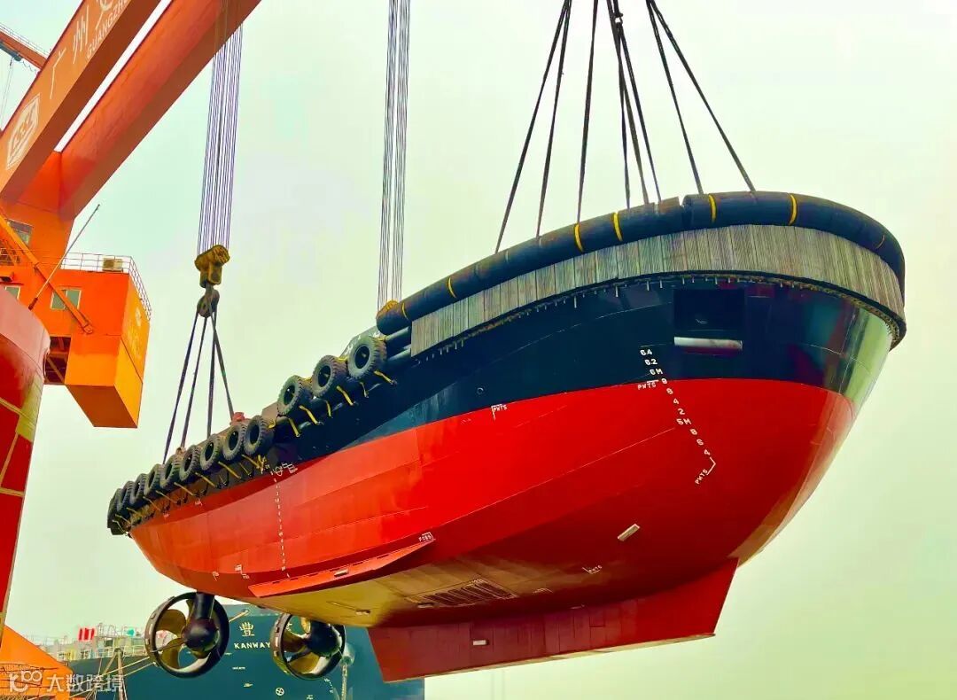 2022年11月15日,中国船舶集团属下中船黄埔文冲公司为埃及苏伊士运河管理局建造的75吨拖轮系列船6#船(H2444)在文冲厂区顺利吊装下水。