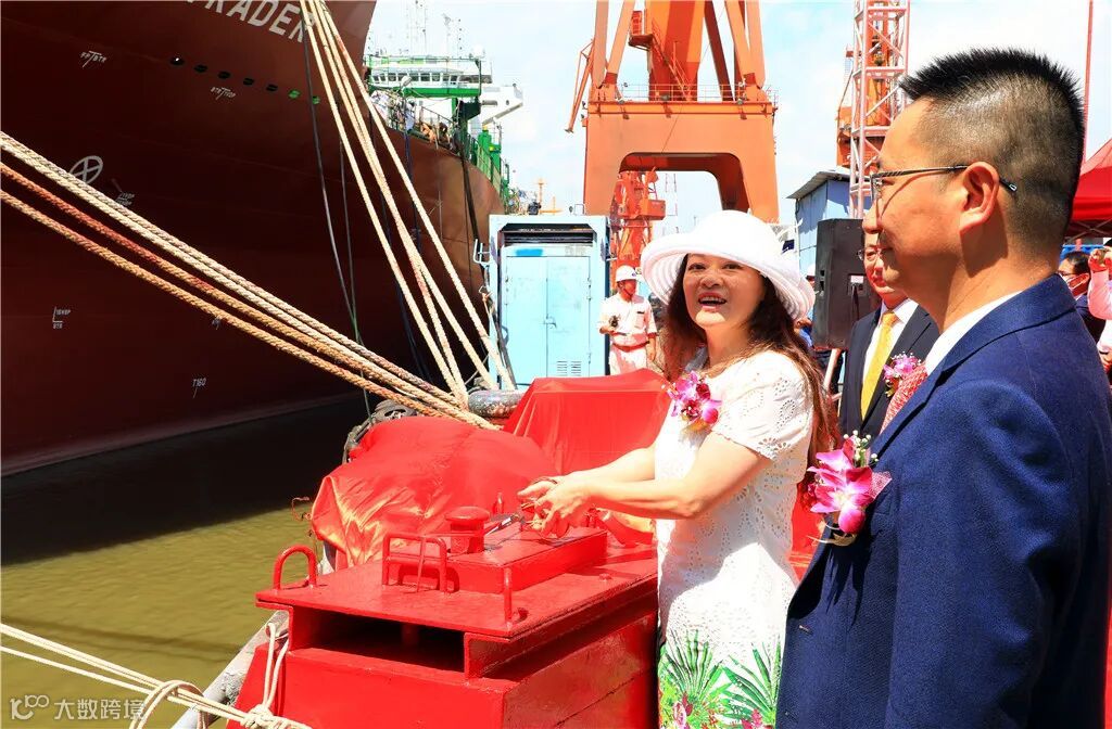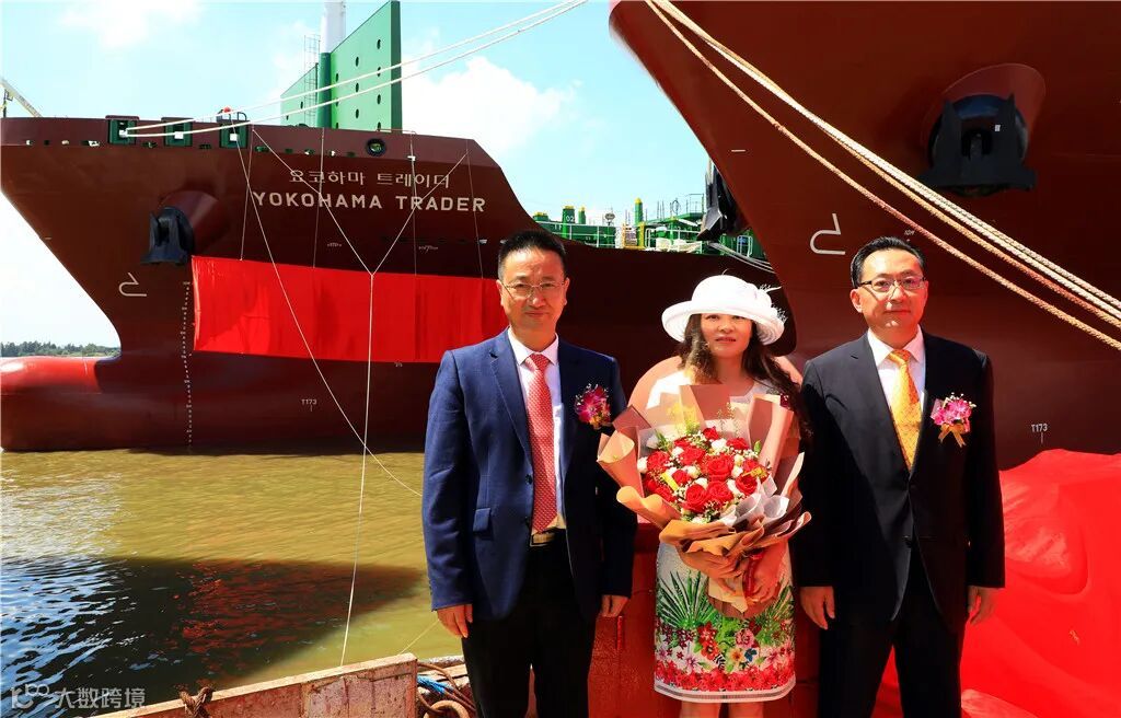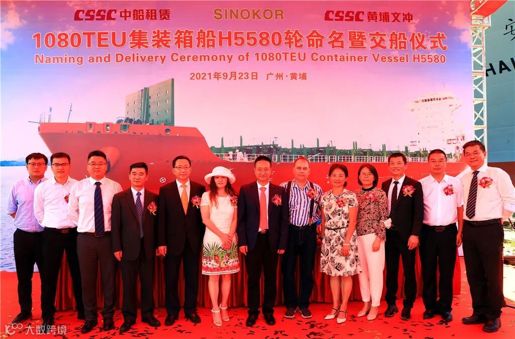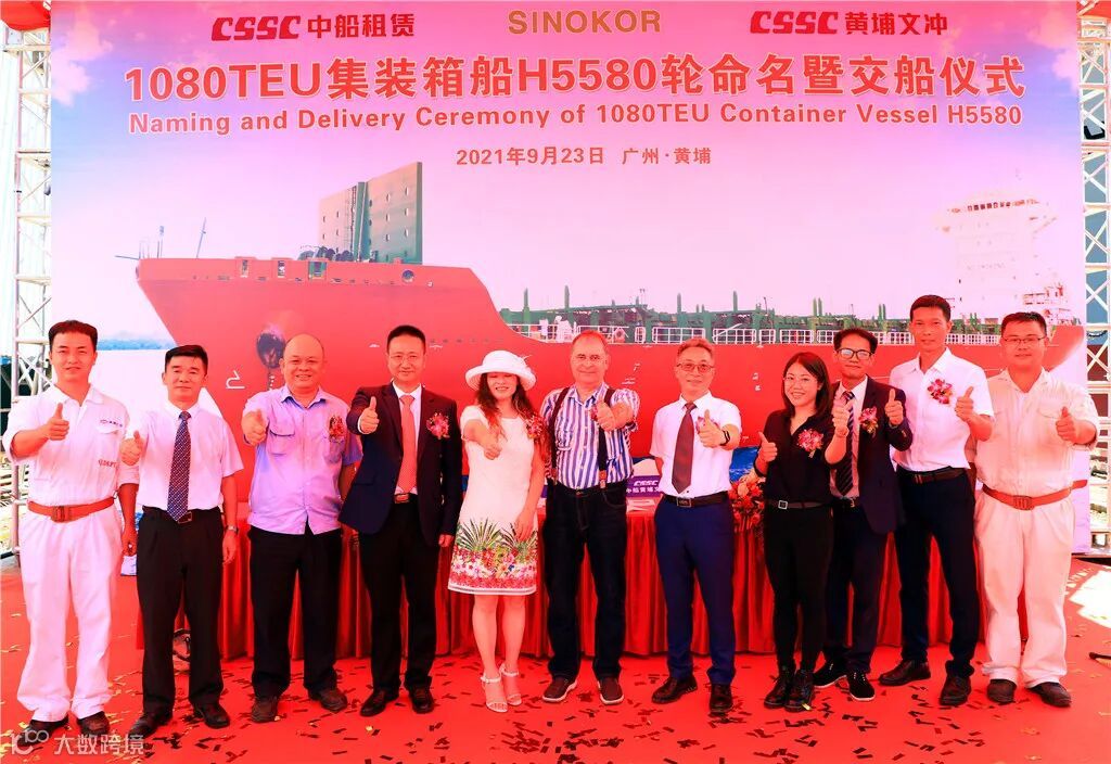 9月23日,在文冲厂区繁忙的码头岸线,中国船舶集团旗下中船黄埔文冲为长锦商船建造的4艘1080TEU集装箱船项目的首制船“YOKOHAMA TRADER”号顺利命名交付。
