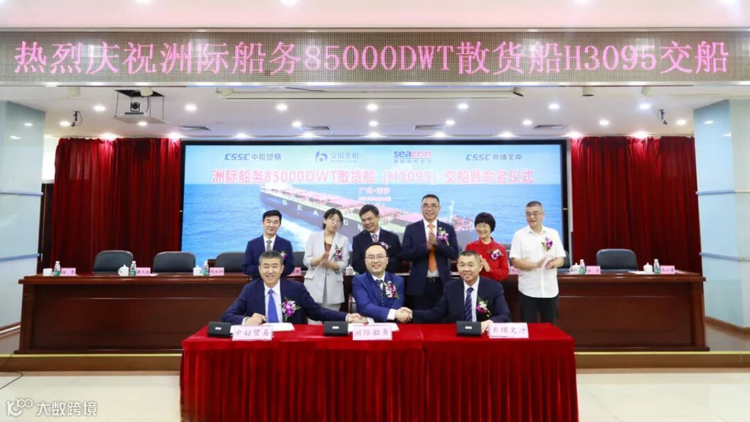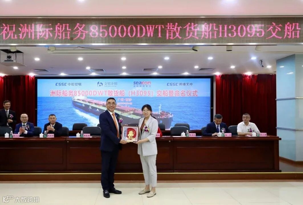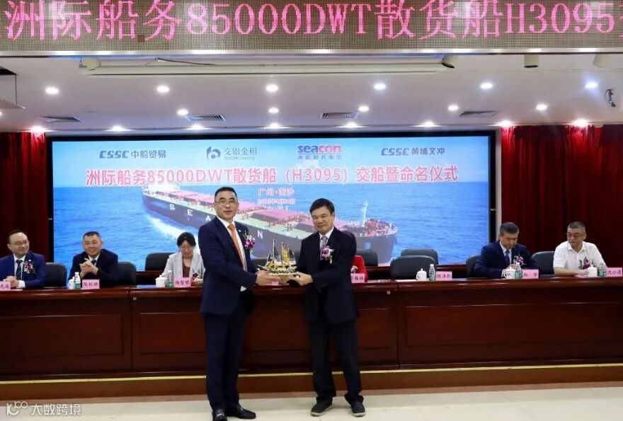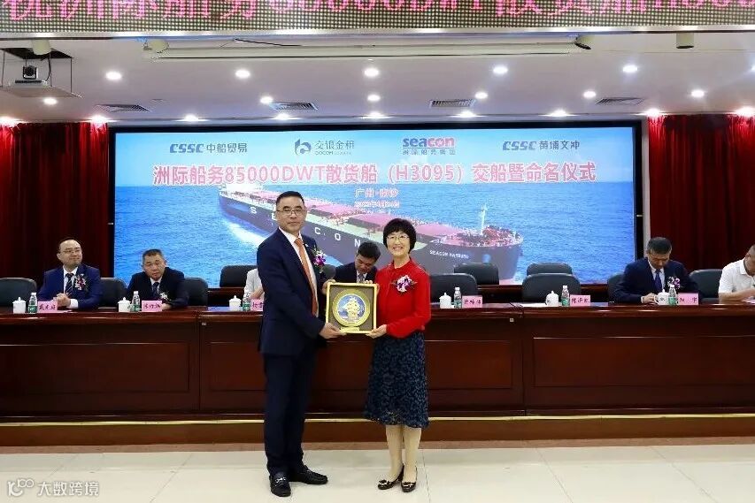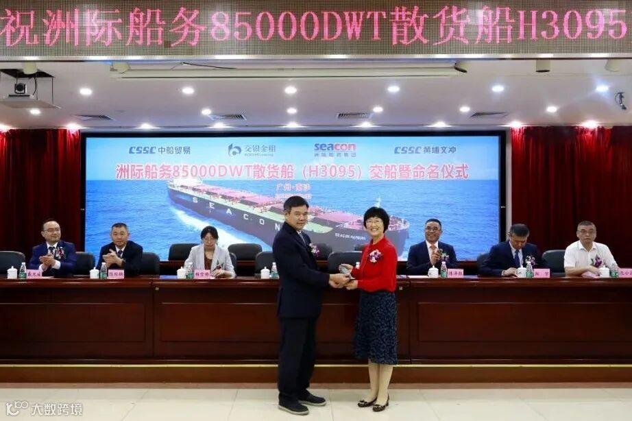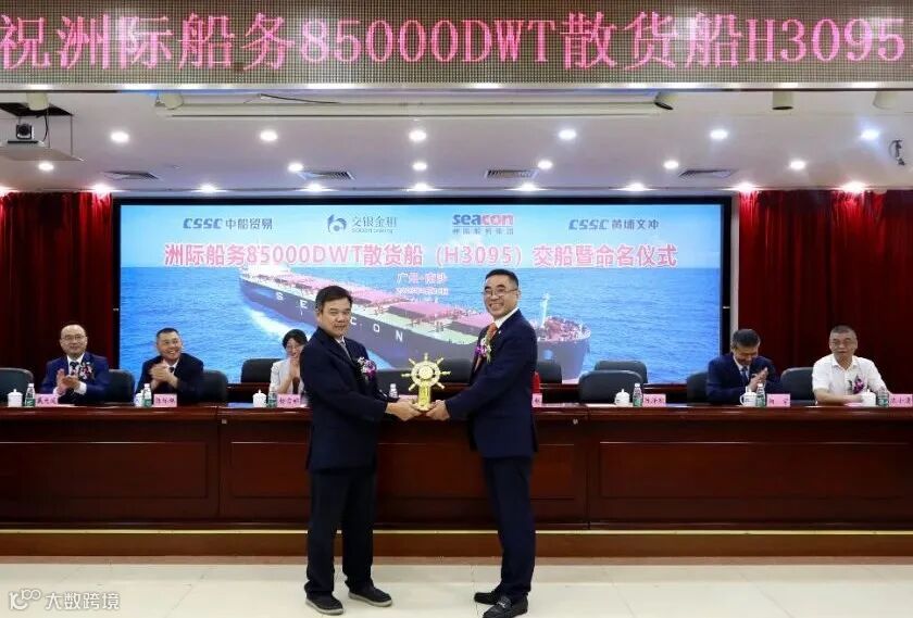 4月24日,中国船舶集团旗下黄埔文冲公司为洲际船务集团控股有限公司建造的自主研发设计的“海鲸”系列新巴拿马型85000吨散货船2号船“SEACON HAMBURG”轮举行命名交付仪式,这是黄埔文冲春节后交付的第二艘85000吨散货船,也是公司交付的第10艘船。